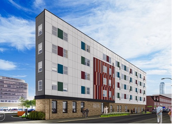 Development of nine-story, mixed-use affordable housing for both a special needs population (homeless adult men and women) and to the community at 810 Arch Street.