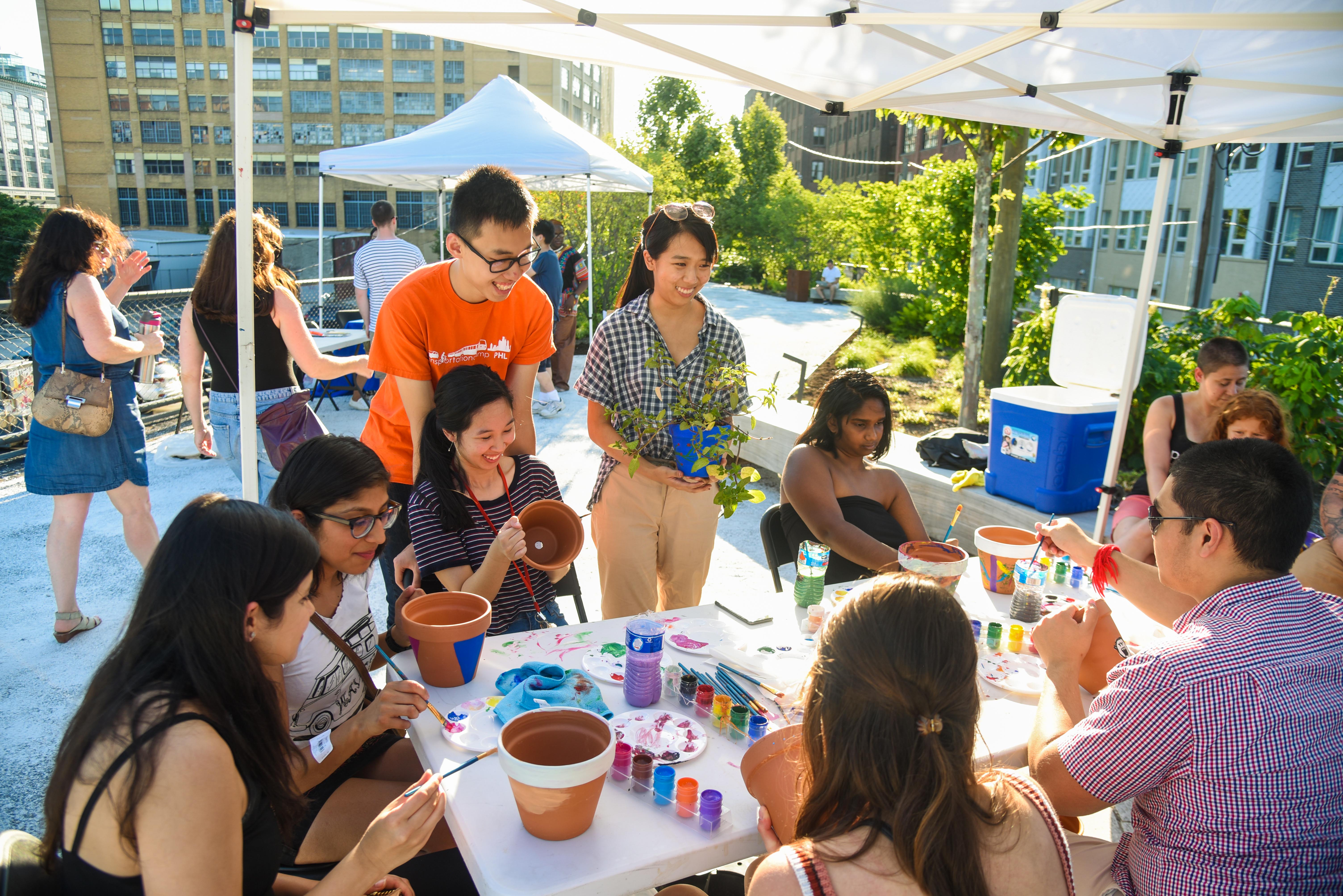 It was hot on the second Saturday of July. However, the heat did not stop the passionate neighbors joining “Parks for Chinatown” programming at the Rail Park. As a collaboration among PCDC, Asian Arts Initiative, and the Friends of Rail Park, “Parks for Chinatown” aims at activating public spaces in Chinatown and connecting residents to the new Rail Park through arts activities, games, and neighborhood artists’ performance.